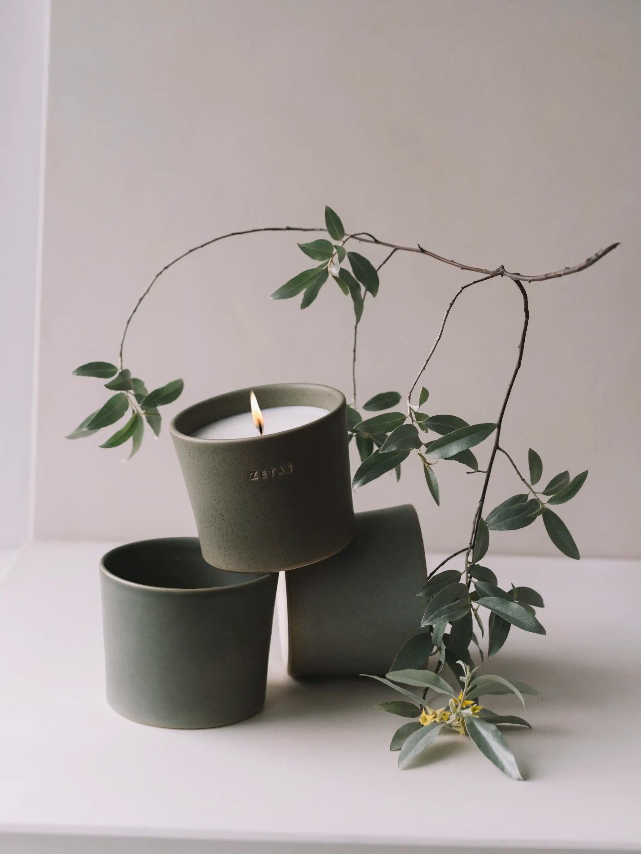 100% natural soy wax in a handcrafted container made of stoneware clay, locally produced in Sweden by Porslinsfabriken i Lidköping