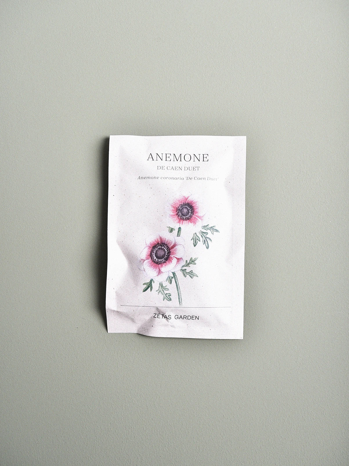 Bouquet Anemone ’De Caen Mix’ from Zetas Garden offers a blend in white, pink, blue, and purple, all with their characteristic dark centers. Ideal for borders or bouquets, with each tuber producing 10–15 blossoms.