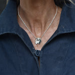 Necklace in recycled sterling silver with a pendant shaped like an anemone, featuring oxidized stamens.