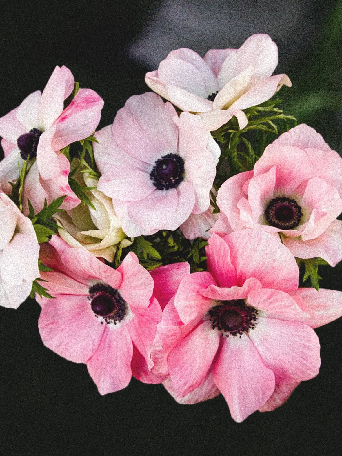 Anemone Coronaria 'Rosa Chiaro' is a delightful, apple blossom pink, semi-double flowers with a dark centre. Italian varieties are great cut flowers and beautiful to mix in bouquets. Anemone coronaria 'Rosa Chiaro' is easy to grow and is appreciated by bin and butterflies. Deer resistant.