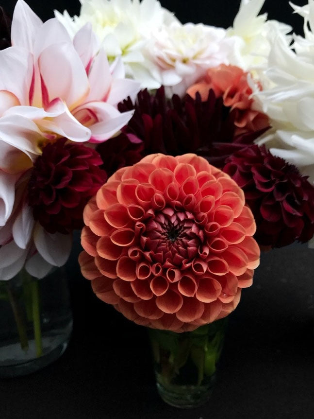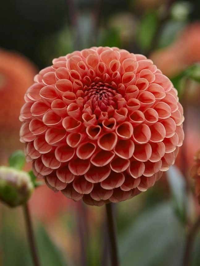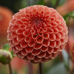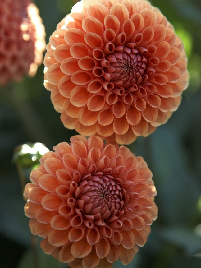 Dahlia 'Cornel Bronze' has a warm and beautiful apricot flower color. This ball dahlia is exquisite in late summer borders! With its long, sturdy stems, 'Cornel Bronze' is excellent as a cut flower.
