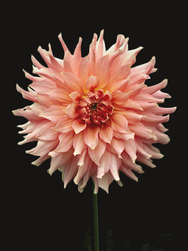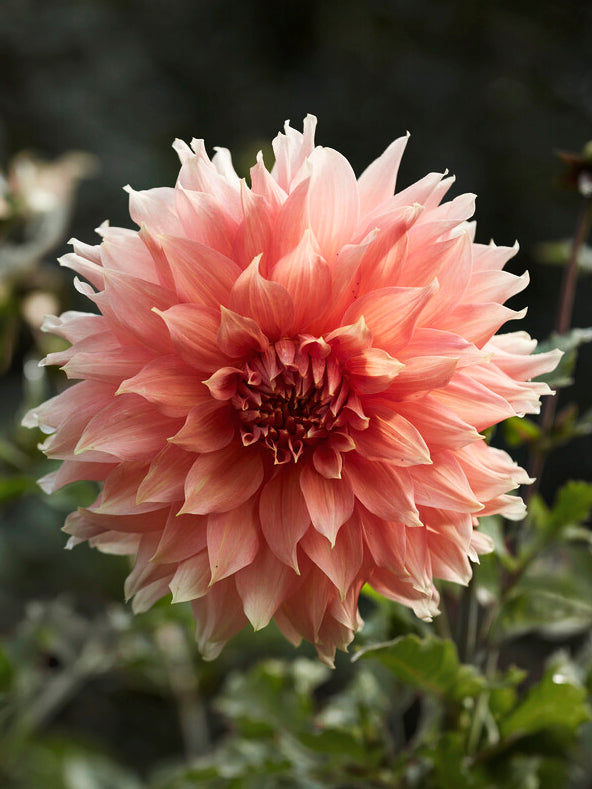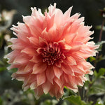 Dahlia 'Fairway Spur' produces extra-large flowers, reaching over 25 cm in coral and apricot-pink hues. The outer petals twist elegantly, enhancing its bohemian appearance, making it irresistibly beautiful in both garden beds and vases. This dahlia is a true conversation starter at any late summer gathering. A single bloom is enough to create a stunning effect, whether in a bridal bouquet or a simple vase arrangement.