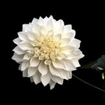 Dahlia 'Fleurel' produces large, fully double white blooms. It is an excellent cut flower and looks stunning in late summer bouquets. The flowers have a luxurious, shimmering appearance.