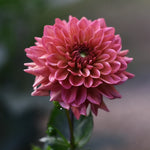 Dahlia ‘Klara Zak’ is a highly decorative variety with fully double blooms in creamy pink shades and a slightly darker centre. The flowers are carried on sturdy, dark-toned stems, creating a striking and elegant contrast. Excellent for cutting and easy to combine in both borders and summer bouquets.