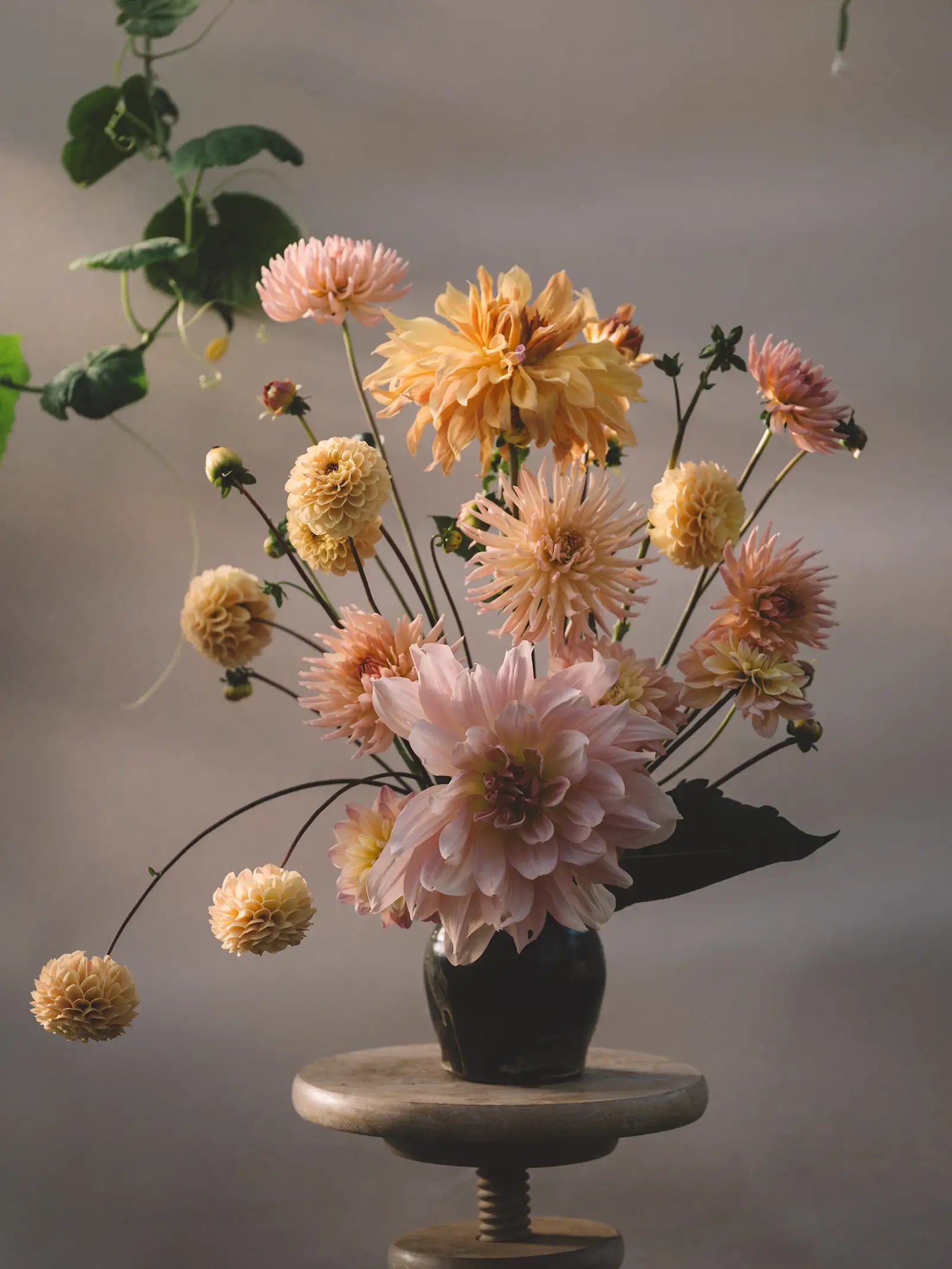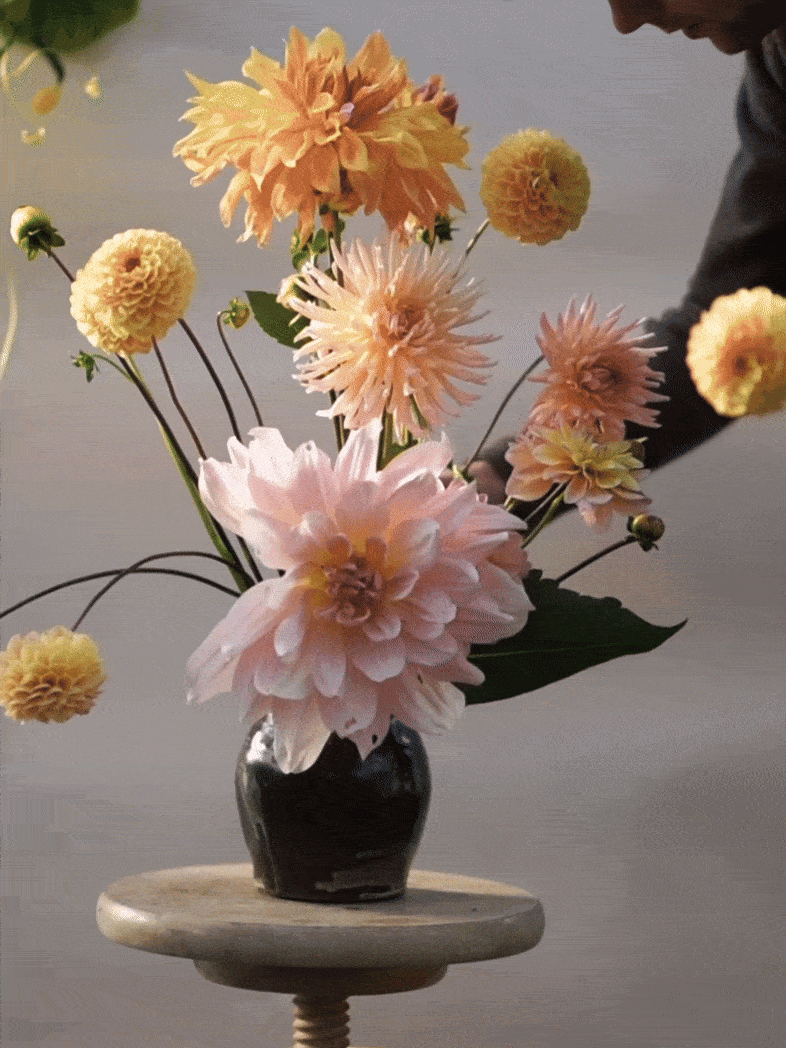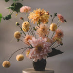 Dahlia Mix 'Fairway Glow' is the ultimate combination for those who love flowers in dreamy apricot-pink hues. Imagine a warm late summer sun painting the sky in soft pastel tones—magically beautiful! This mix includes three different dahlias: the stunning ‘Fairway Pilot’ in warm apricot, the soft light pink cactus dahlia ‘Henrietta,’ and the apricot-yellow ball dahlia ‘Yellow Jill,’ which lasts long in summer bouquets.