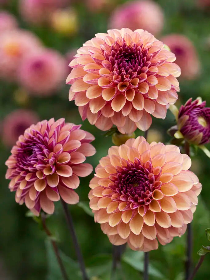 Dahlia ‘Palmares’ features soft pink and cream petals in apricot-beige tones with a purplish centre, creating an elegant, watercolour-like effect. An exclusive and highly decorative dahlia in beautifully nuanced colours. It blooms generously and stands on sturdy stems, making it ideal for cutting.