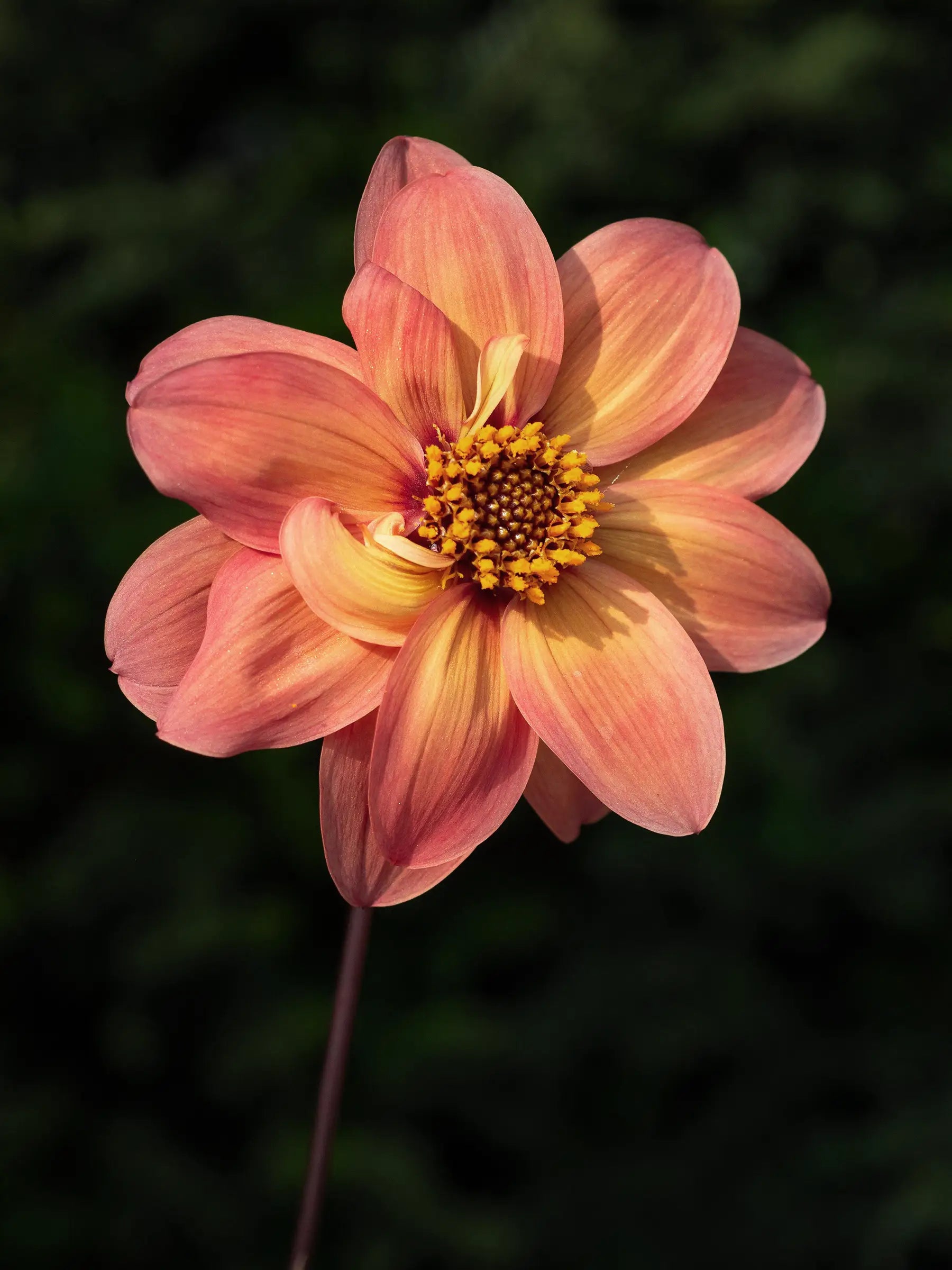 Dahlia ‘Schipper's Bronze’ features warm bronze-toned blooms with hints of red-orange, gold and apricot. The unique colouring, combined with dark foliage, creates a beautifully glowing presence in the garden, especially striking in late summer and autumn plantings. An expressive and distinctive dahlia that also attracts butterflies and bees.