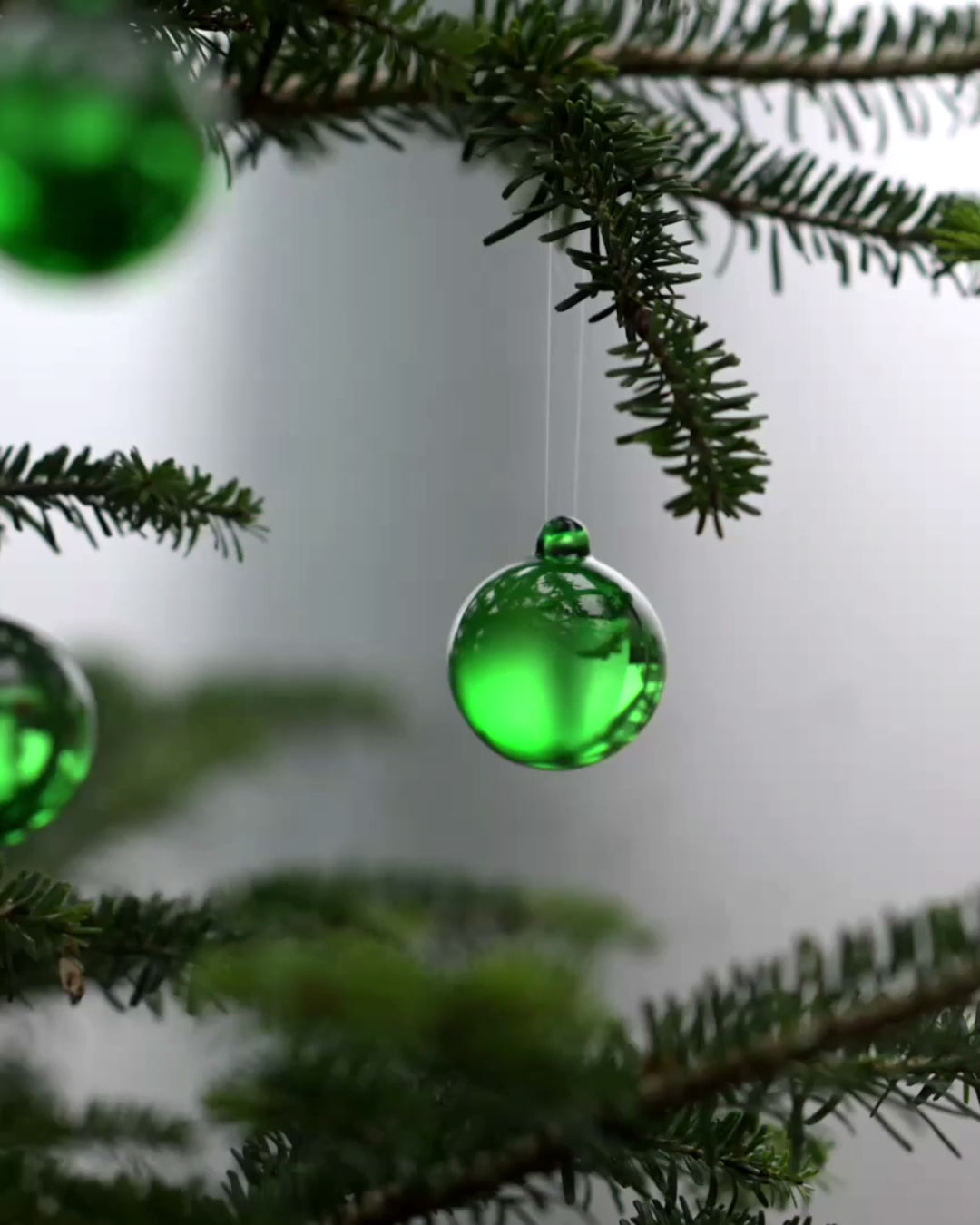 Handmade ‘Emerald’ glass ornaments in solid, emerald-green glass with a hanging hole. A simple and elegant decoration for all seasons. Perfect for hanging in windows, the Christmas tree, or above a table. The glass reflects light beautifully in the room.