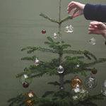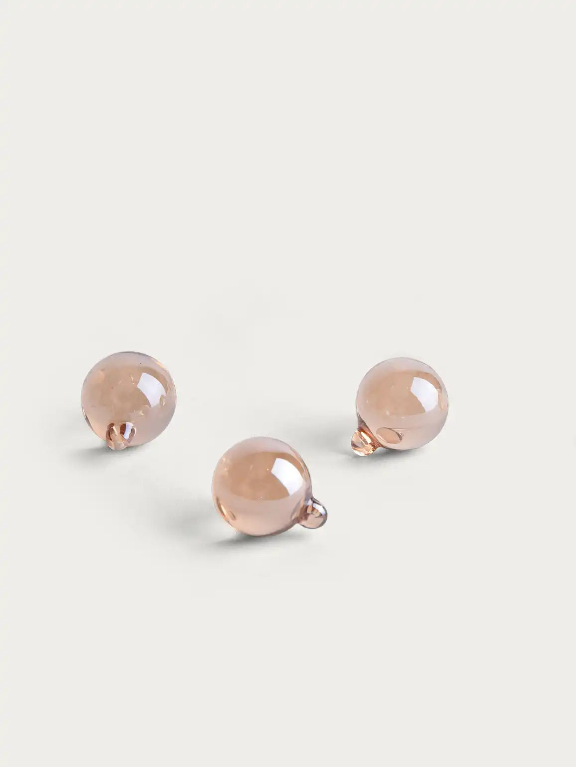 Handmade ‘Gold Champagne’ glass ornaments in solid, champagne-coloured glass with a hanging hole. In certain light, they reveal a soft, metallic shimmer. A simple and elegant decoration for all seasons. Perfect for hanging in windows, the Christmas tree, or above a table. The transparent glass beautifully reflects the light in the room.