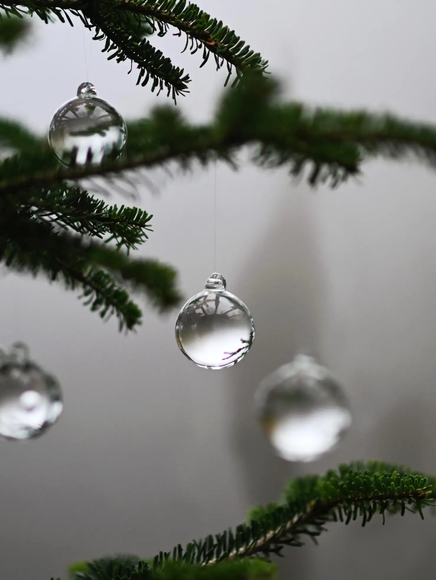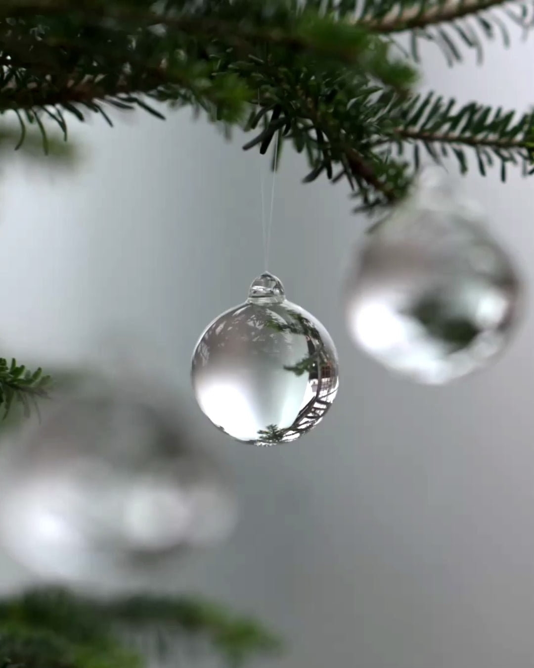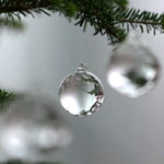 Handmade ‘Transparent’ glass ornaments in solid, clear glass with a hanging hole. A simple and elegant decoration for all seasons. Perfect for hanging in windows, the Christmas tree, or above a table. The transparent glass beautifully reflects the light in the room.