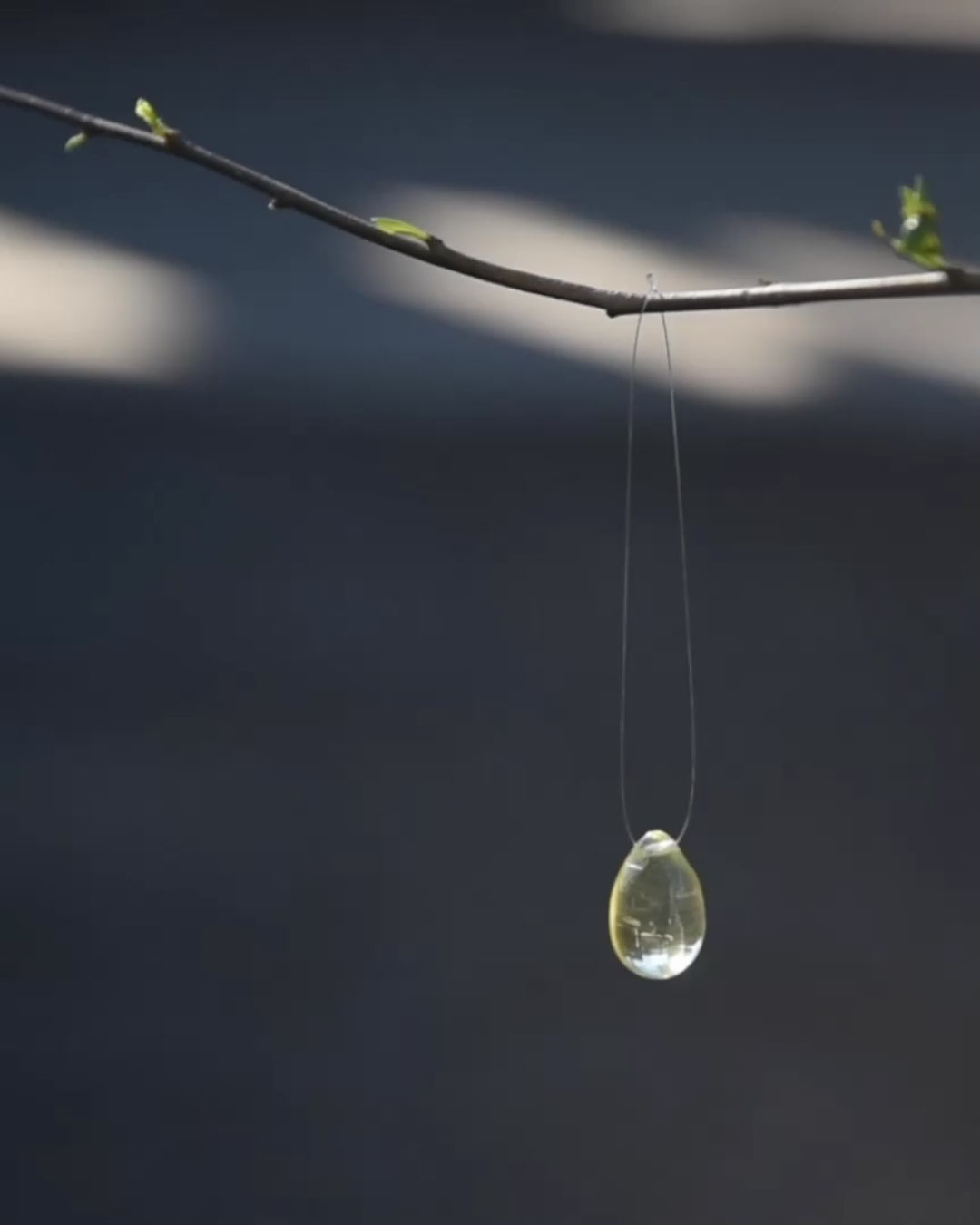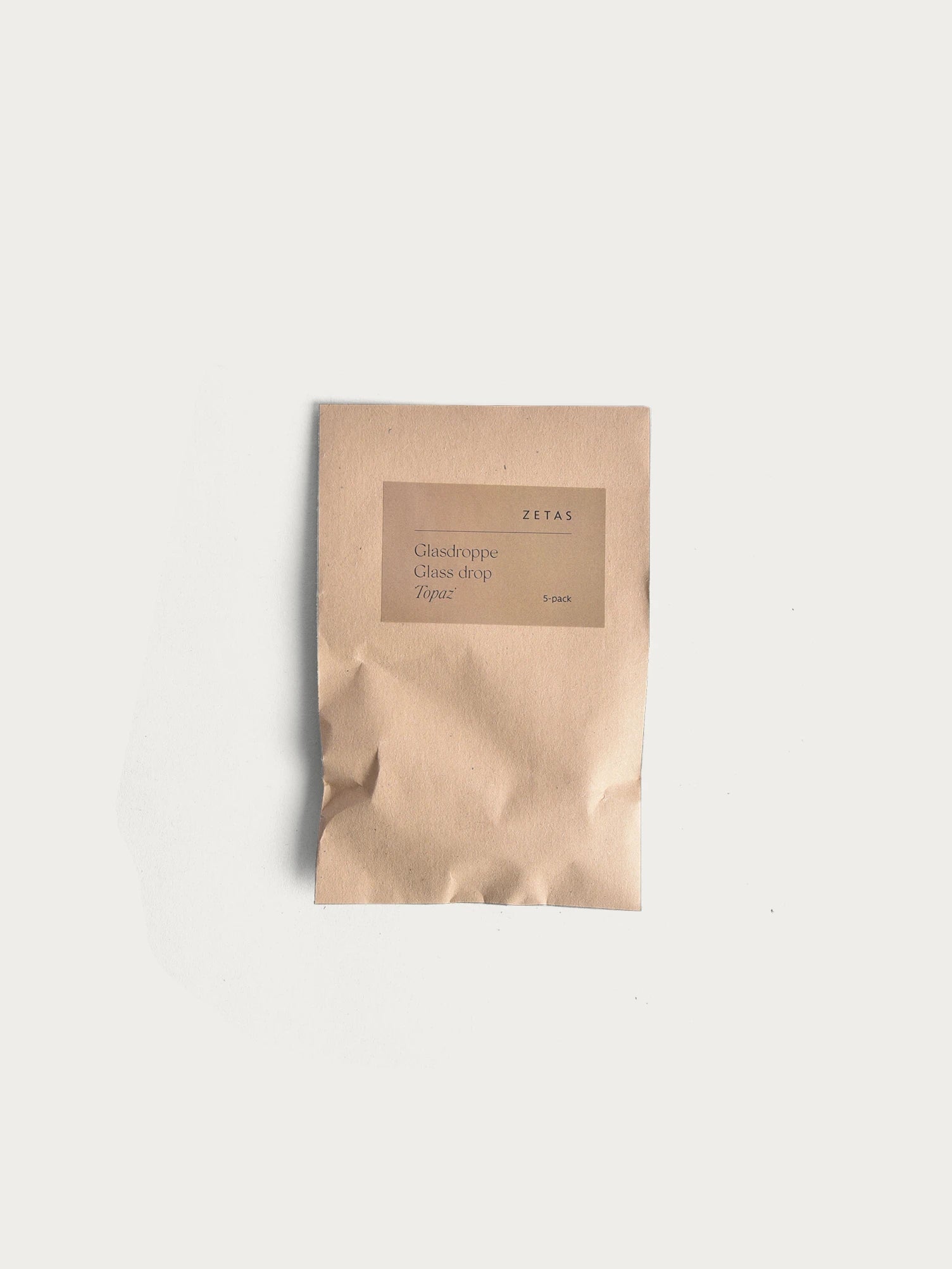 Glass Drop 'Topaz' in solid amber-colored glass with a hole for easy hanging. Made both by hand and machine from transparent glass. Each drop is completely unique, so appearance may vary slightly. Tip: Add a fine thread and hang them from branches for a simple and elegant display.
