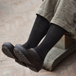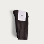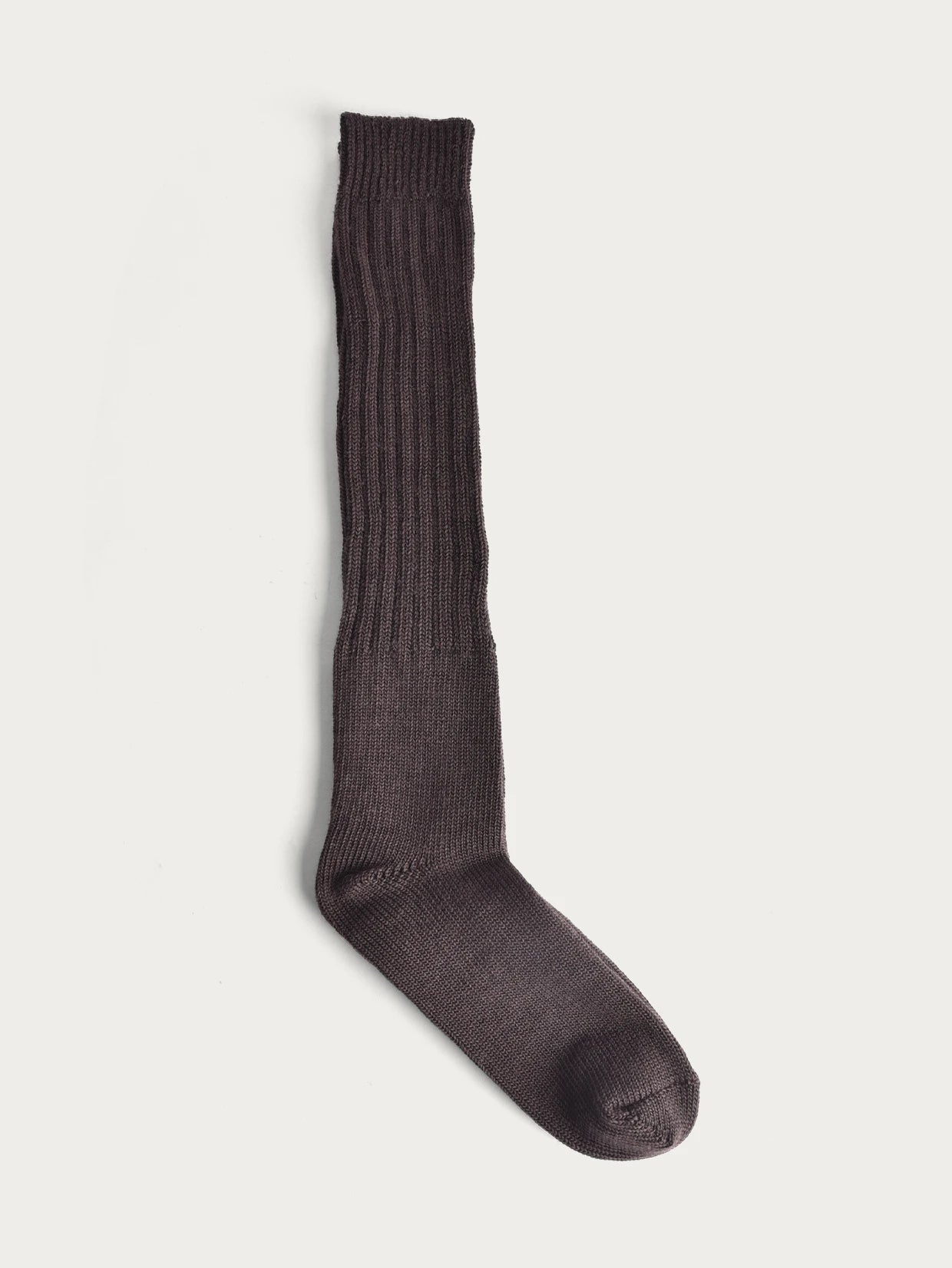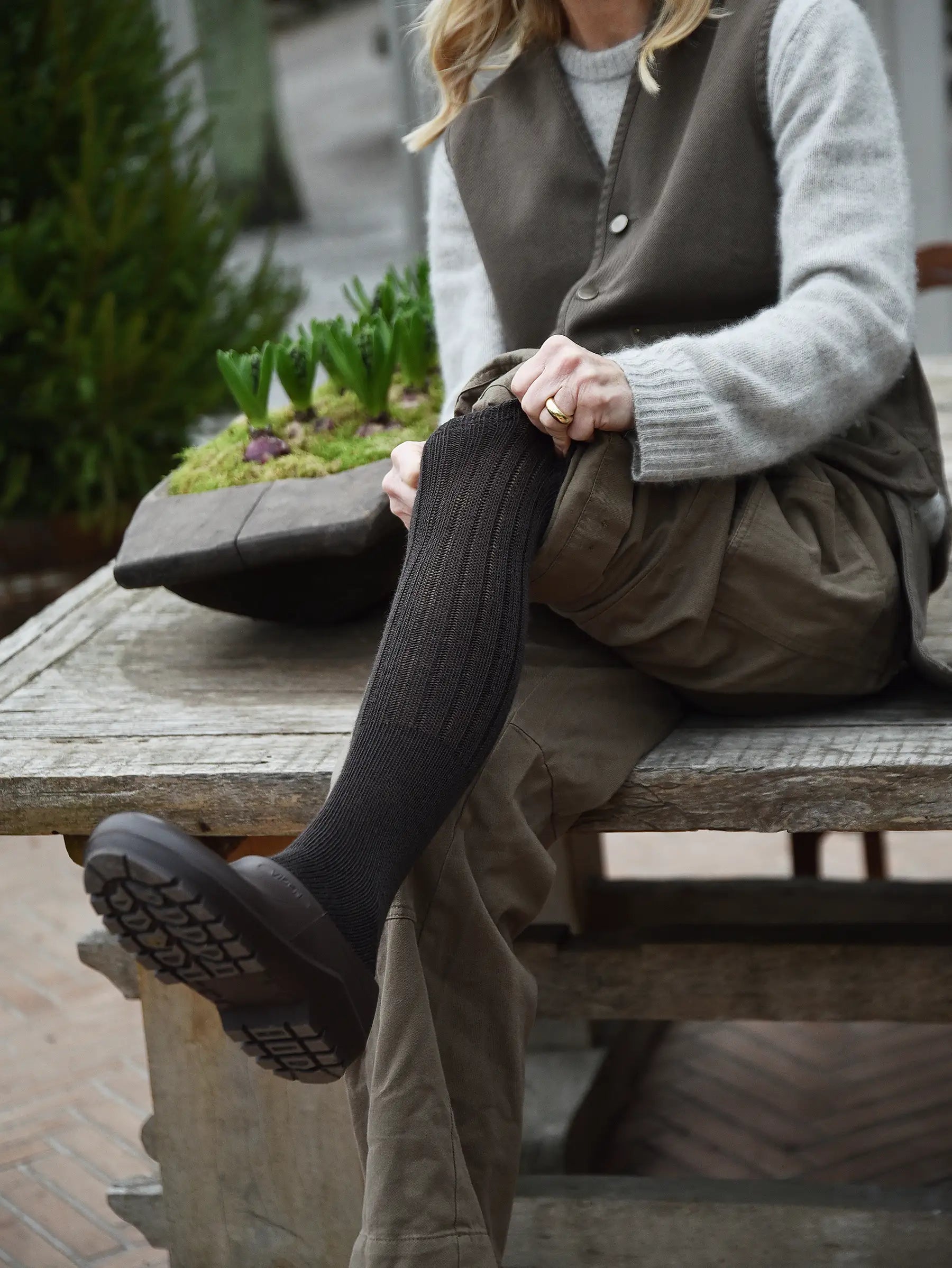 Knee socks wool 'Ribbed' dark brown are soft and durable garden socks, designed for all seasons of the year. Woven in a beautiful dark brown shade that blends naturally among borders and garden paths.