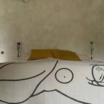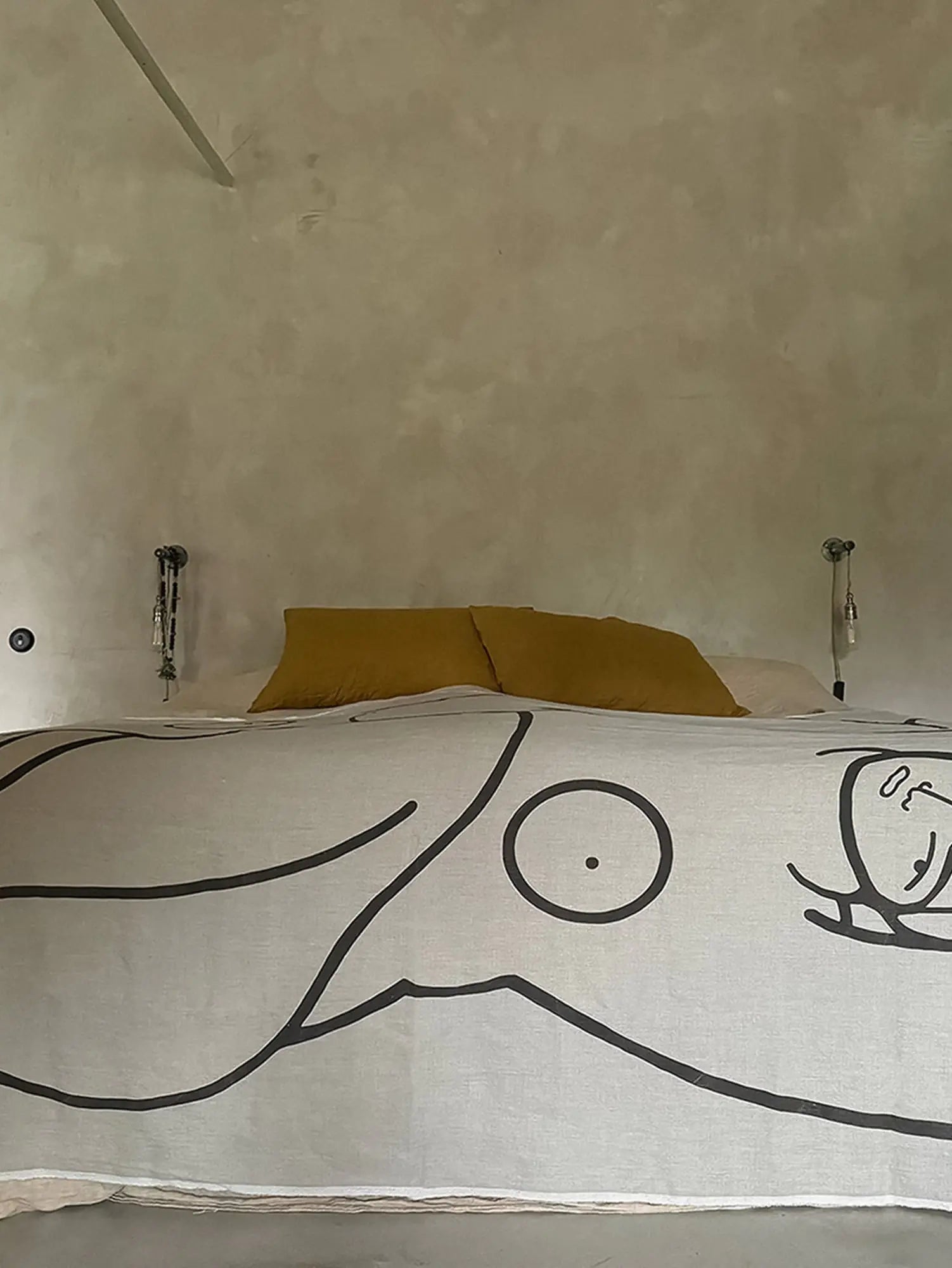 Linen Tablecloth Artwork WE Woman + Woman is an elegant and timeless tablecloth made of 100% washed linen with a graphic pattern. An expressive and inclusive artwork that works equally well as a tablecloth, bedspread, or wall hanging.
