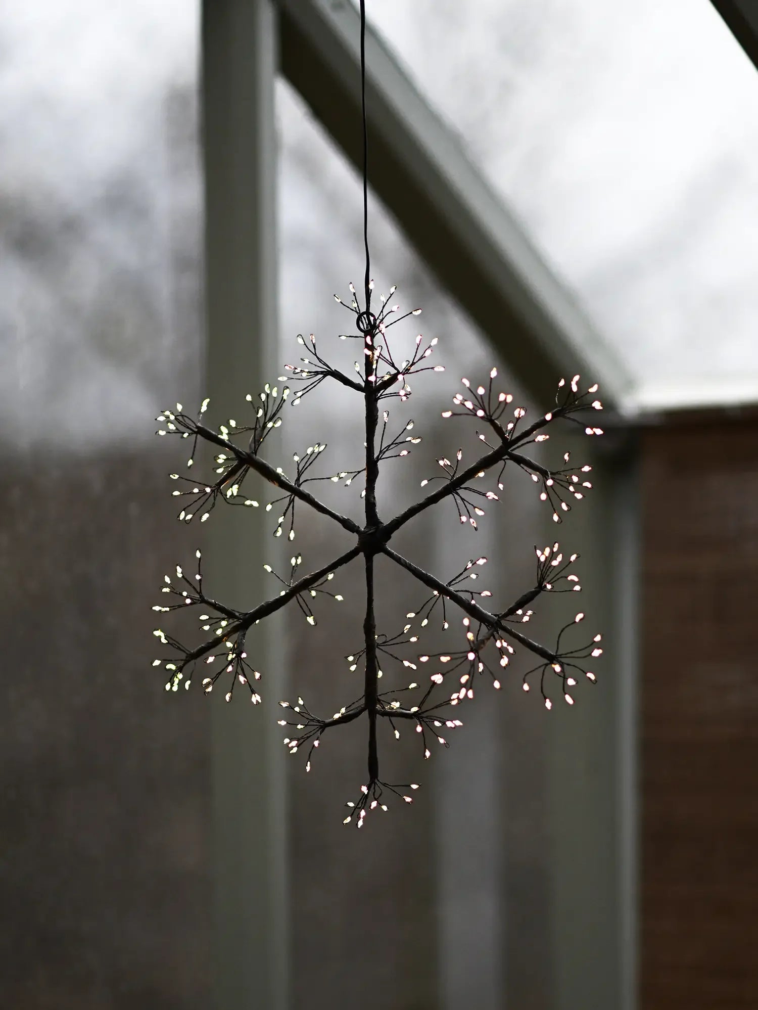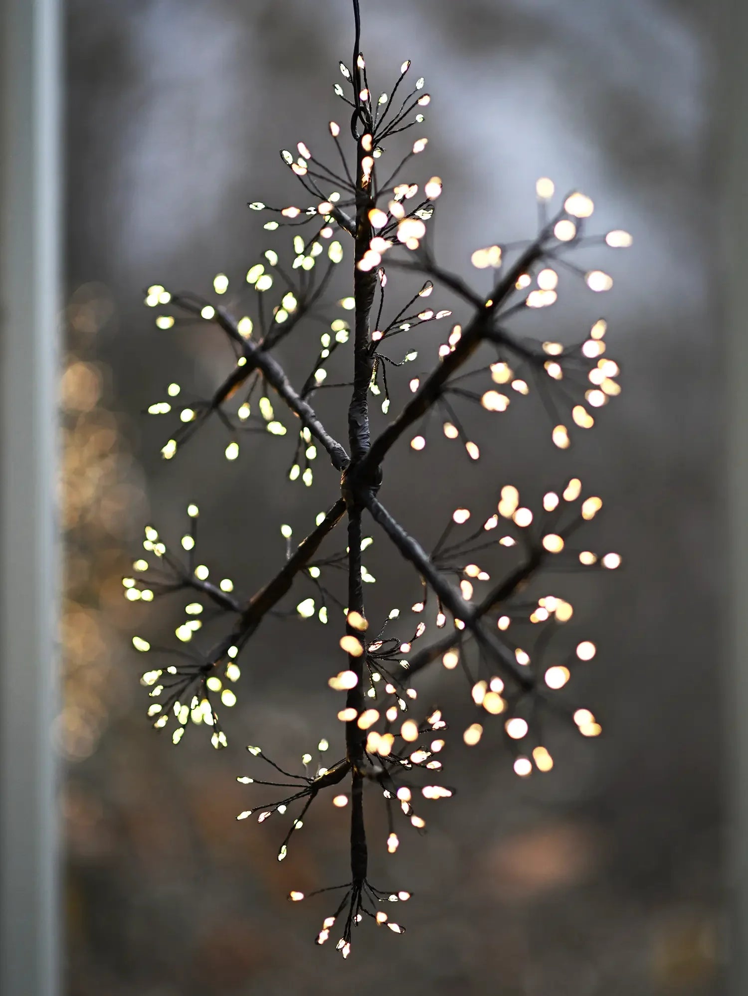 Suitable for both indoor use and outdoor use under cover. The lighting consists of 300 small LED lights distributed across 6 branches, together creating an elegant white winter glow.