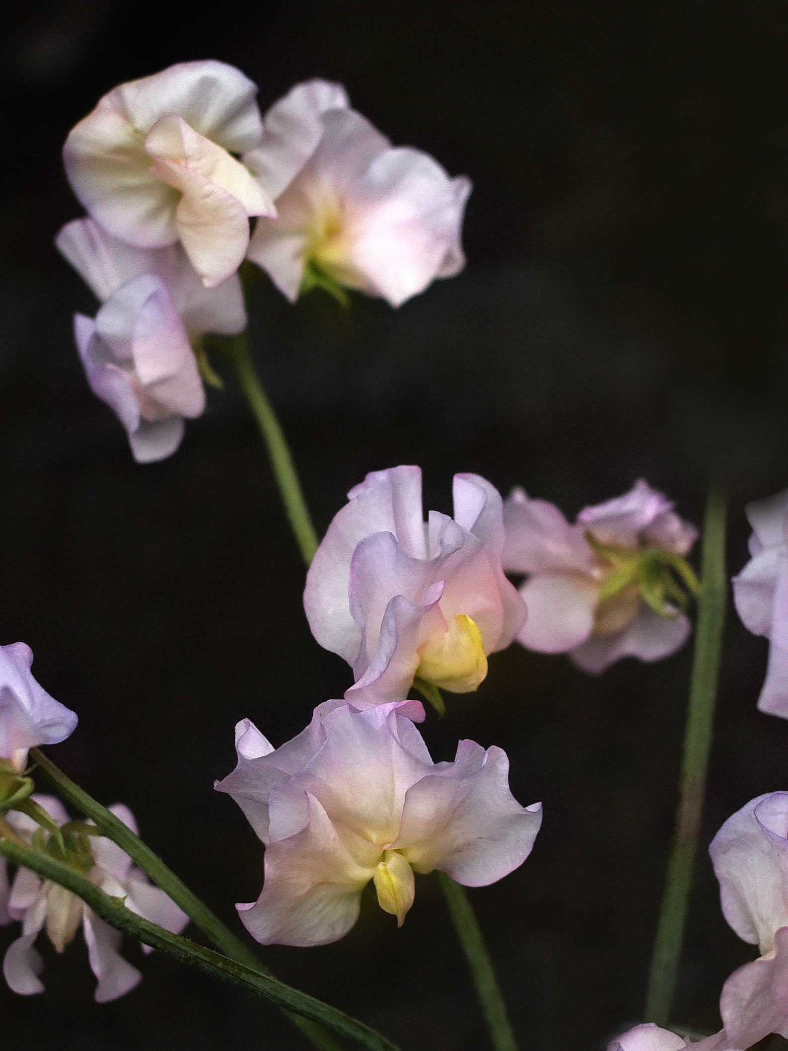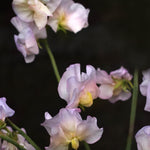 A delightful odouriferous pea with creamy white petals with dark purple thinly shaded edges. The buds are slightly lime-coloured and quickly change to a beautiful white tone as the petals unfold. It grows long stems if you have been careful with watering. Very durable in bouquets. One of our favourites!
