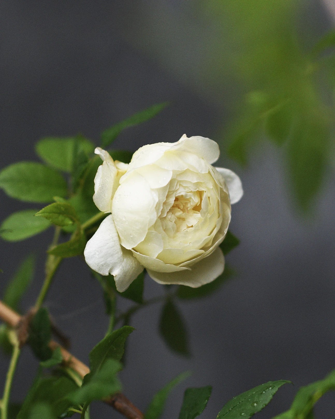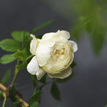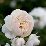 The Austin rose ‘Claire Austin’ is an elegant white rose that blooms abundantly throughout the season. It has pale lemon-coloured buds that open into densely double, creamy white flowers. The fragrance is strong, with notes of myrrh, vanilla and heliotrope. The plant has healthy, lush foliage and gracefully arching branches, making it suitable as a small climbing rose. It grows to about 150 cm tall and is a robust and reliable variety that combines beautifully with spring bulbs, peonies and perennials in the garden.