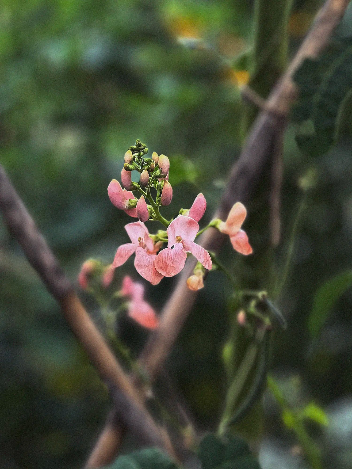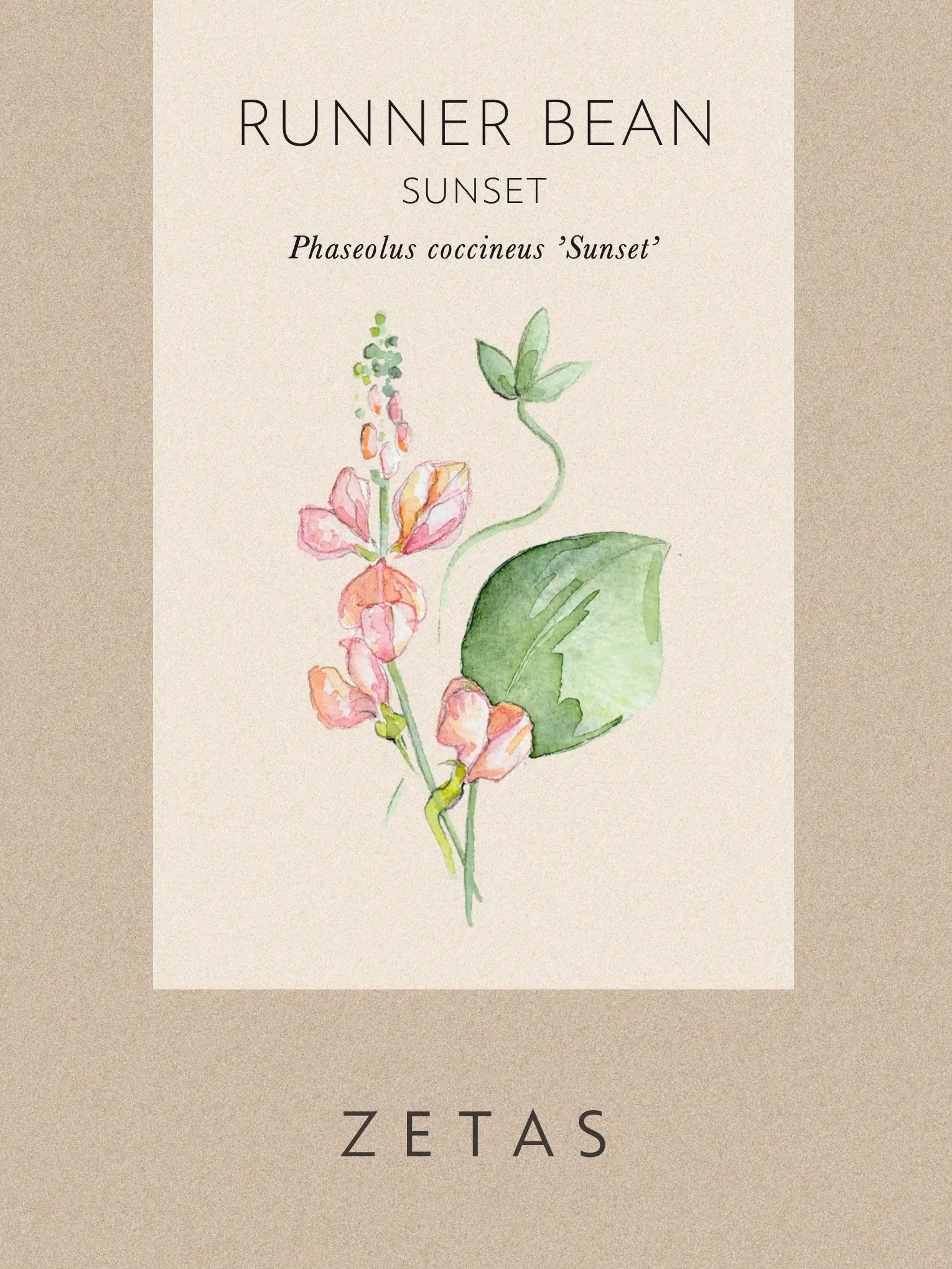 Runner Bean 'Sunset'. You can hardly get more impact from a single seed than from this variety of the fast-growing runner bean. The flowers have a lovely apricot color, and the young beans are perfect for eating in salads. An excellent focal point in the kitchen garden. Attracts bees, bumblebees, and butterflies.
