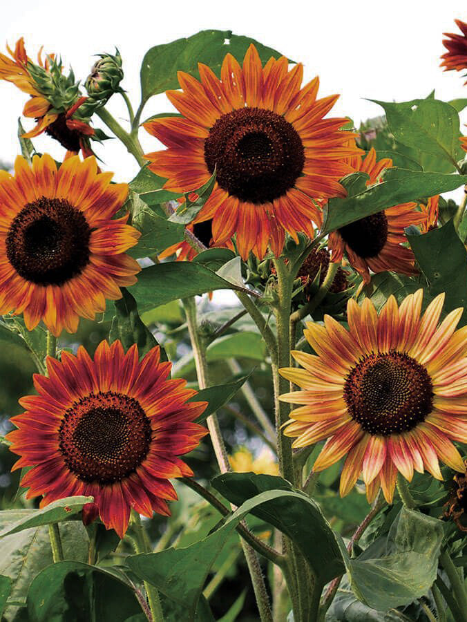 Sunflower 'Evening Sun' is an eye-catching sunflower that boasts impressive flower heads in sunset colours on tall, branched stems. Ideal to place near a fence or wall. Easy to grow. Excellent cut flower. Loved by bees, bumblebees and butterflies. Birds appreciate the seeds of the sunflower.