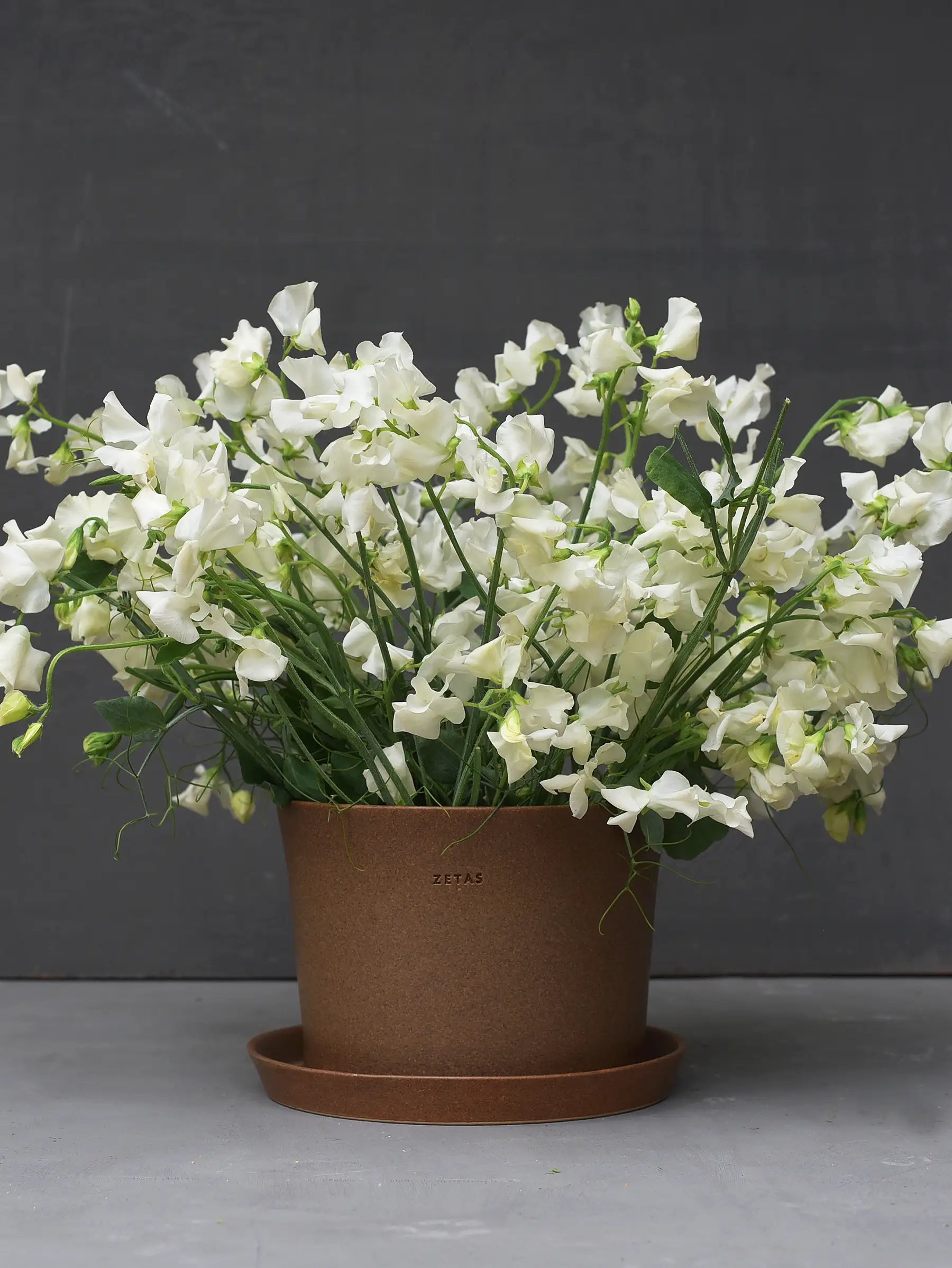 Sweet Pea ‘Cathy’ produces a gorgeous display of large creamy white flowers with a heady scent. This vigorus climbing plants will quickly cover an arch ore a trellis. Beautiful in bouquets and the more you pick, the more flowers you get.