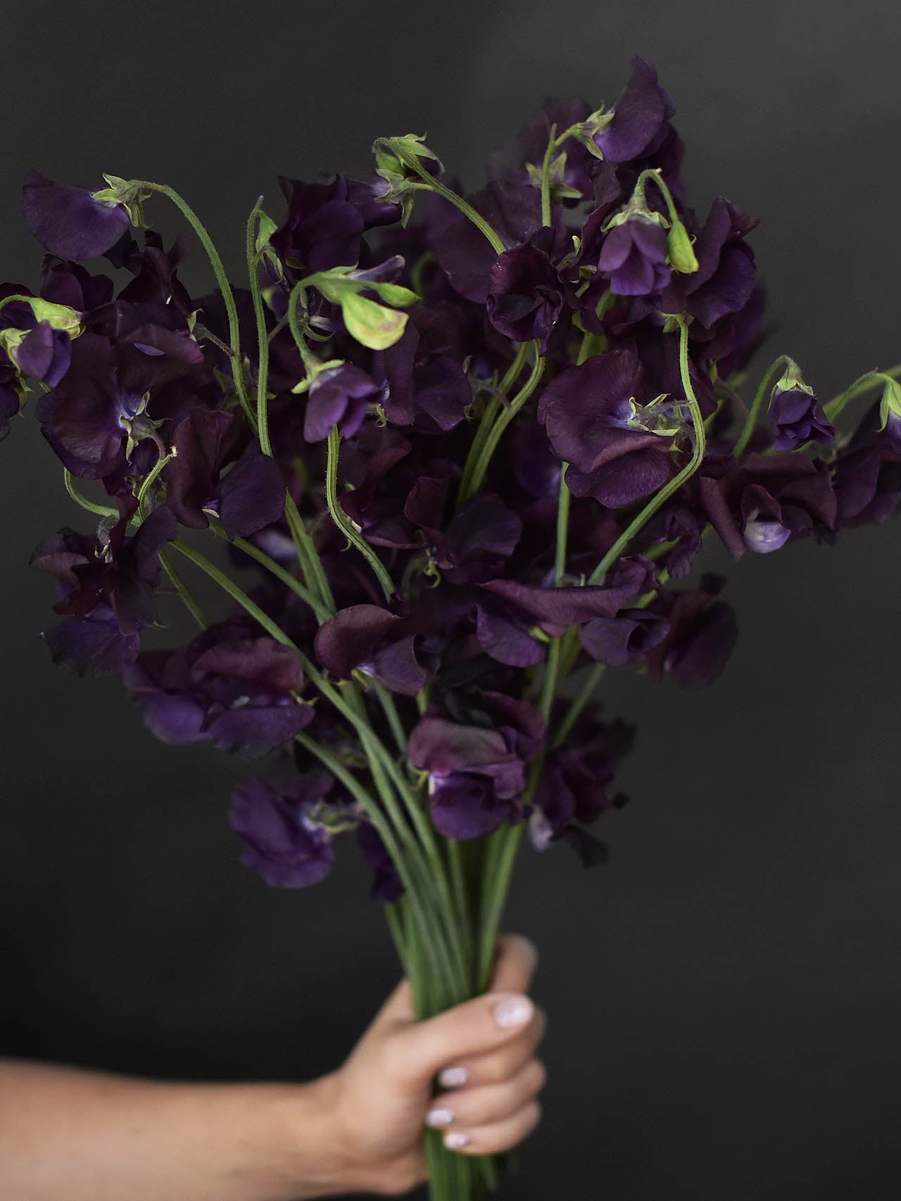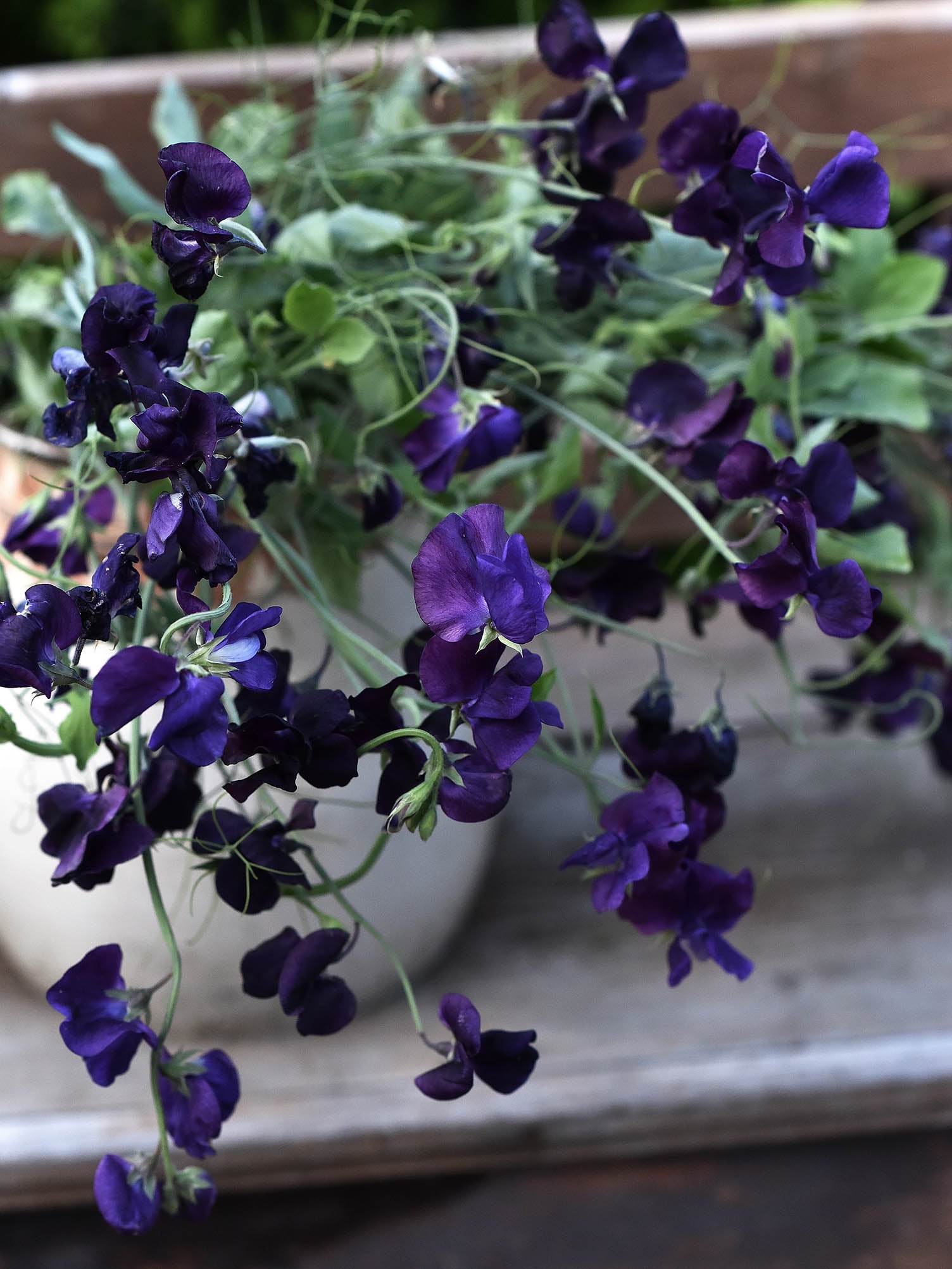 Sweet Pea 'Winter Sunshine Navy' is an exclusive deep dark blue variety with a strong fragrance. It is richly flowering with sturdy long stems.