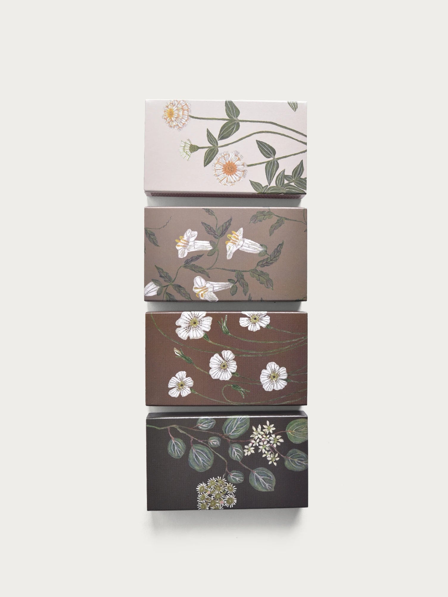 Matchbox with extra-long sticks, adorned with a blooming motif of Cup and Saucer Vine, Cobaea scandens. The back features a unique photograph from our store opening in 1975, a tribute to our history and joy of gardening.