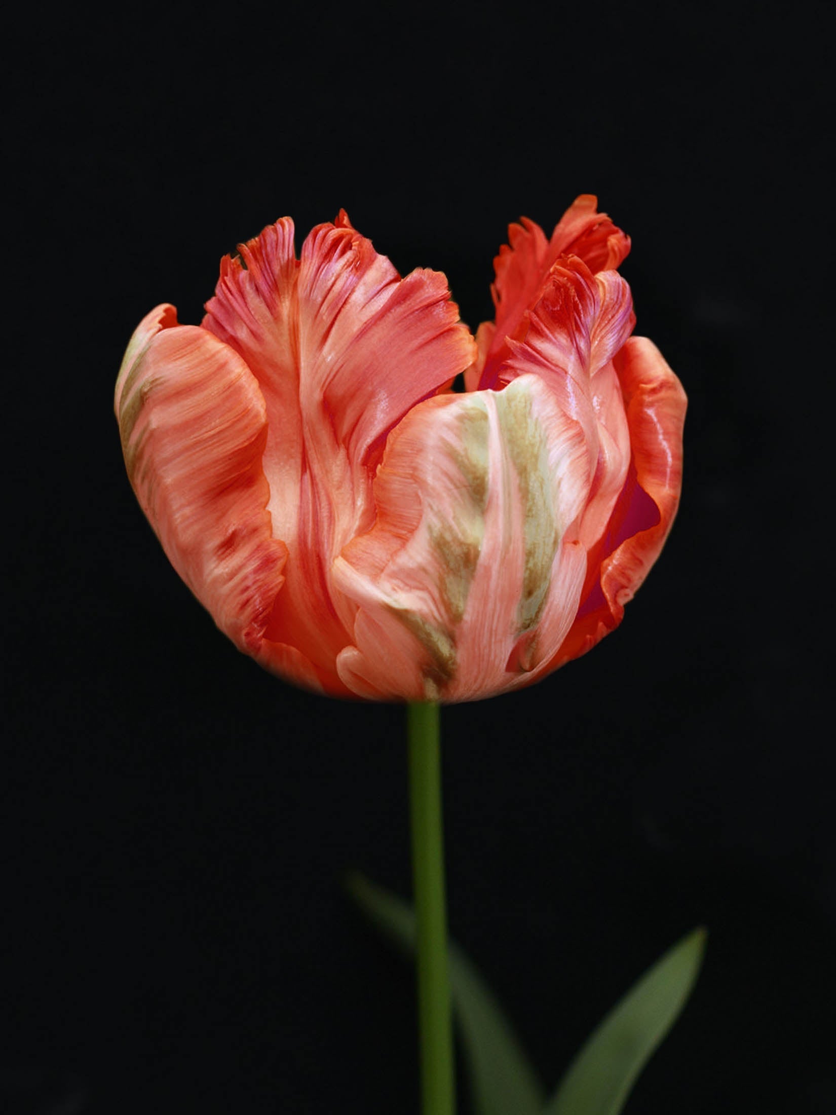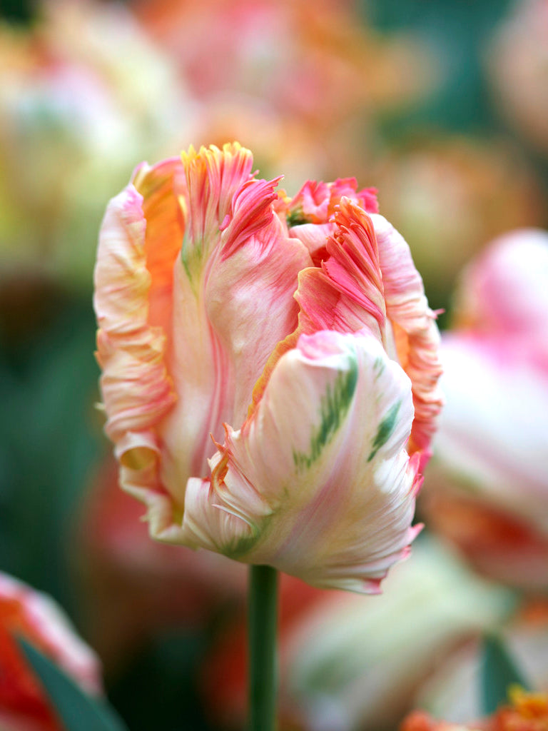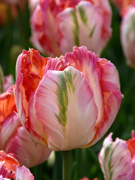 Tulip 'Apricot Parrot' (Tulipa 'Apricot Parrot') is a pink-apricot colored parrot tulip with delicate green-white streaks along the sides. A magical variety that truly stands out in the garden.