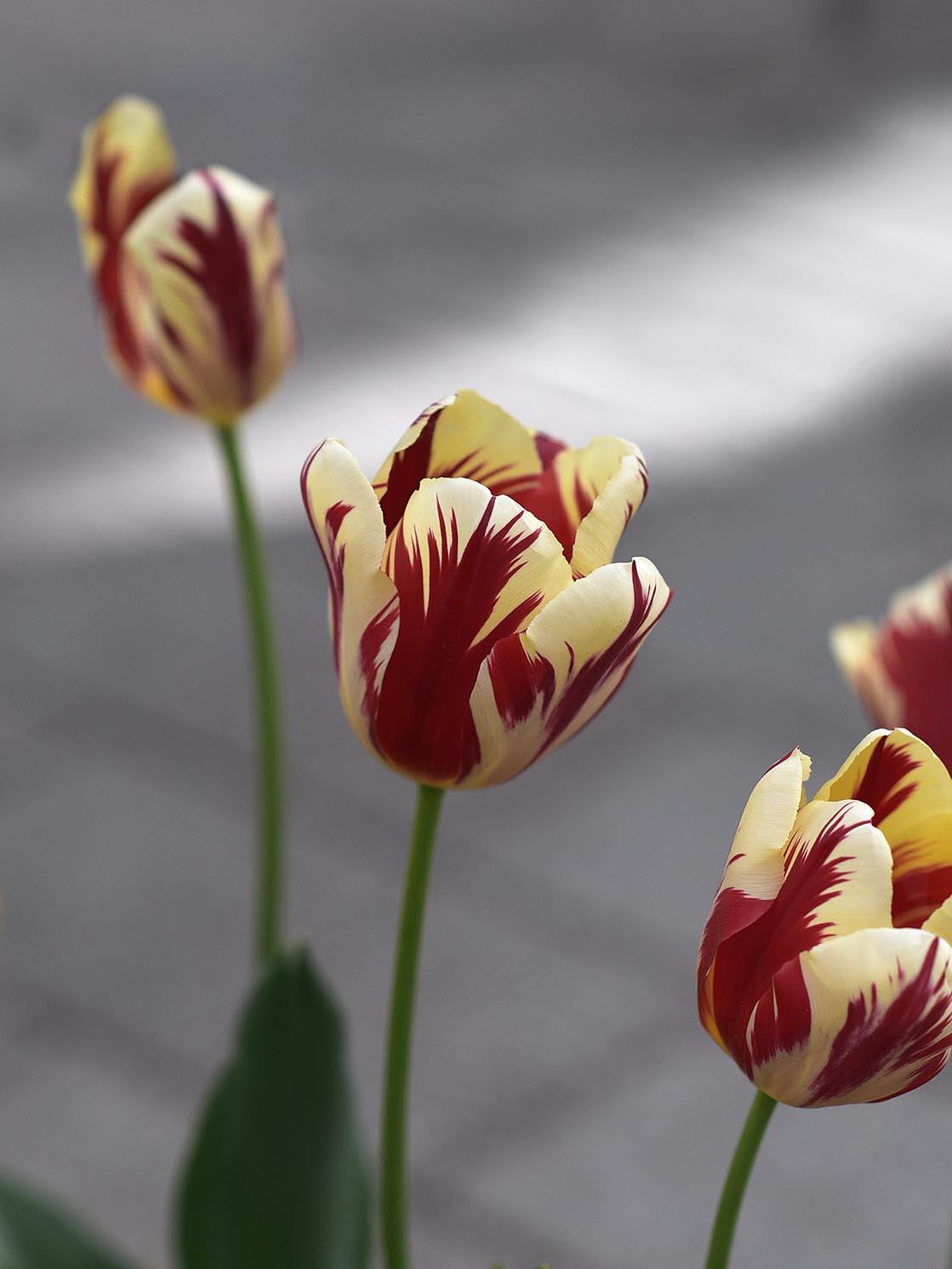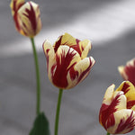 Tulip 'Grand Perfection' (Tulipa gesneriana 'Grand Perfection') features an elegant, elongated bloom reminiscent of historic tulip varieties. Its creamy base is marked with bold red streaks and flames. Plant in groups with 10 cm spacing and at a depth of 15 cm. Also suitable for pots of at least 50 liters.