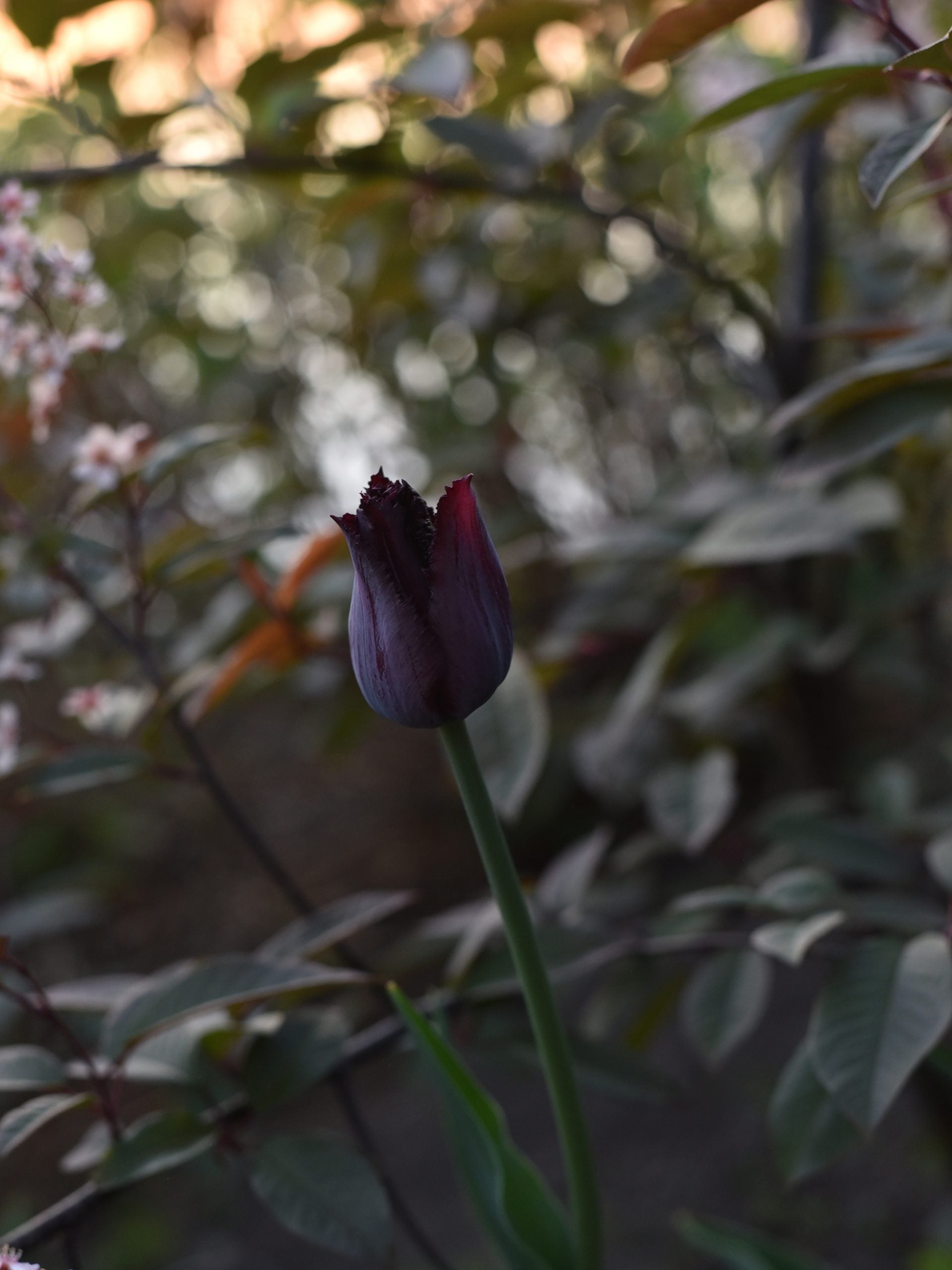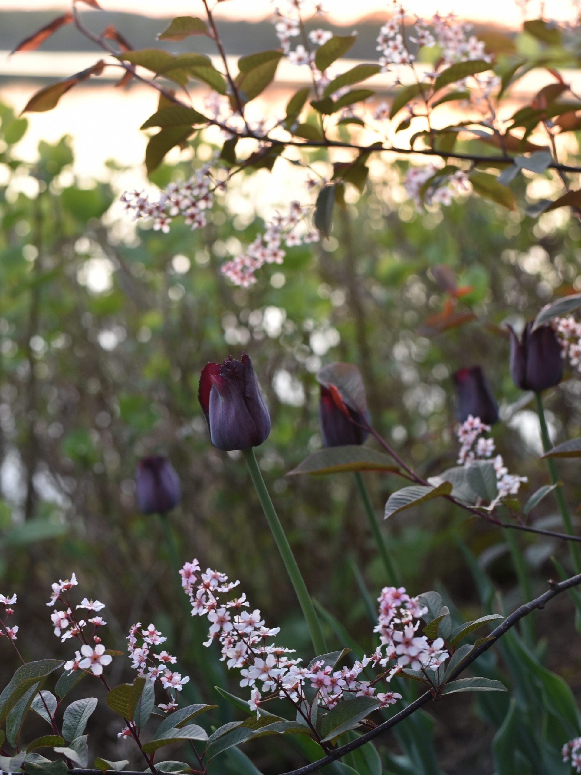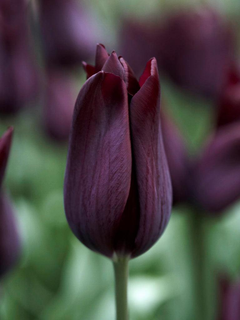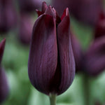 Tulip 'Havran' is a slender tulip with slightly pointed petals in a dark, silky purple shade. Beautiful when combined with white daffodils. Prefers sun to partial shade in well-drained, nutrient-rich soil. Blooms from early May and reaches about 40–45 cm in height. Excellent as a cut flower with a long vase life. Scentless.