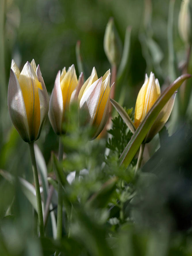 Tulip 'Tarda' (Tulipa ‘Tarda’) is a species tulip with creamy yellow petals and white tips. It opens in sunlight and closes in the evening. This small botanical tulip is easy to grow and can self-seed. 'Tarda' often forms blooming carpets and is perfect for rock gardens or as a spring-blooming border plant. Reaches a height of 20 cm and also grows well in pots.
