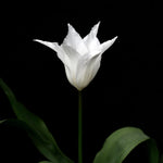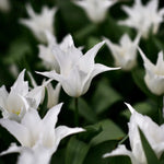 One of the most beautiful lily-flowered tulips we know. The flower has an elegant, elongated shape that floats in the wind. The color is shimmering satin white. The petals open towards the sun and close in the evening. Pair it with the dark tulip 'Black Hero' and white Allium for a stunning combination! This variety tends to return year after year. It’s also very beautiful when paired with the spring grass Sesleria heufleriana. Highly recommended!