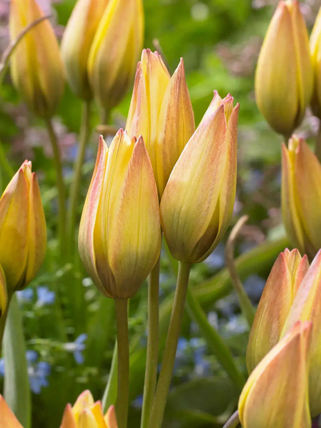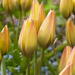 Tulip 'Lucca', Tulipa 'Lucca' brings spring cheer with its teardrop-shaped buds that open into bright yellow flowers in the sun. At the heart of the bloom, darker amber-brown tones with a touch of chocolate create a striking contrast to the golden petals. 'Lucca' is a dwarf botanical tulip, perfect for rock gardens, pots, or as edging. Each bulb often produces multiple flowers, adding color year after year.