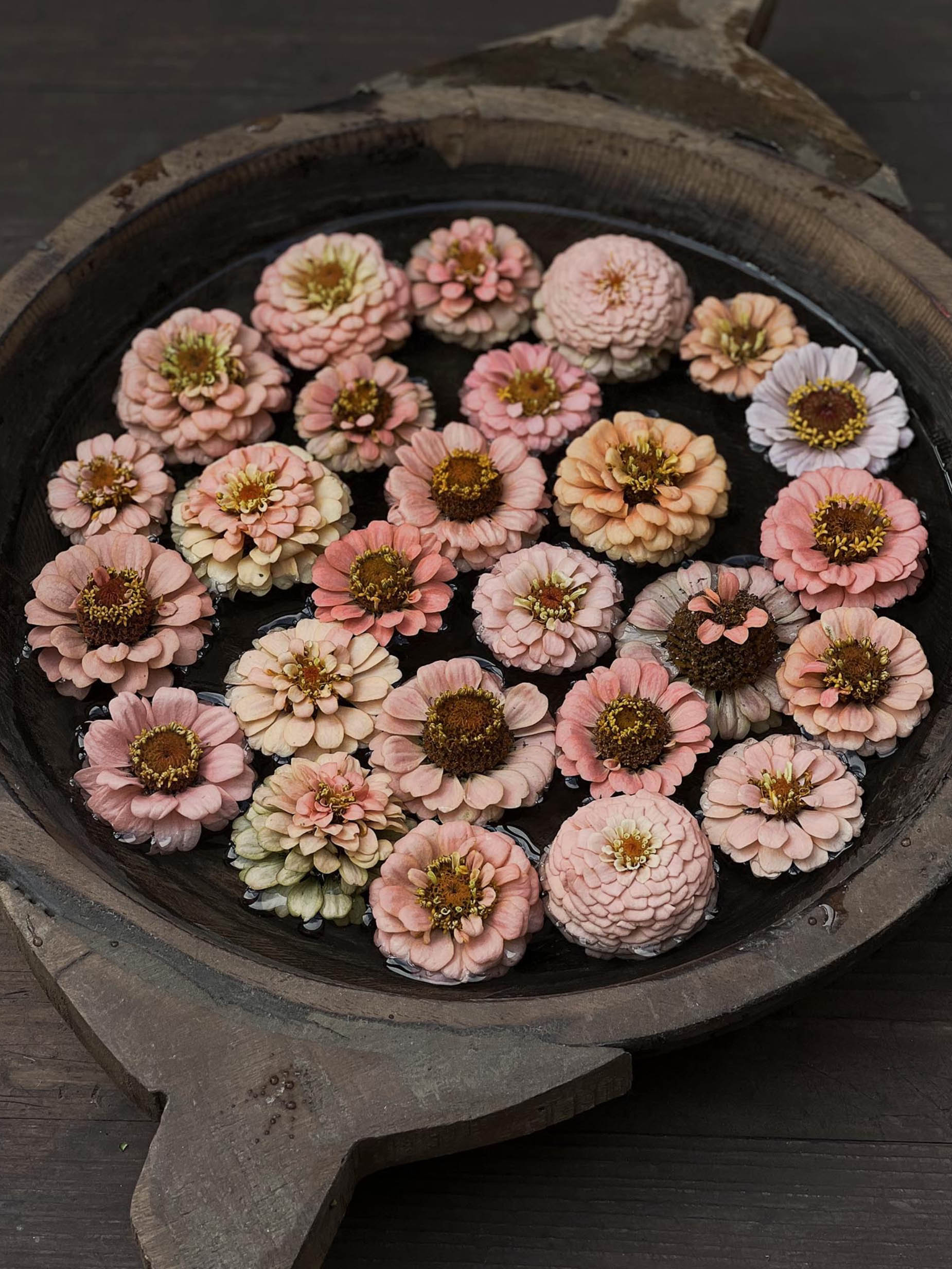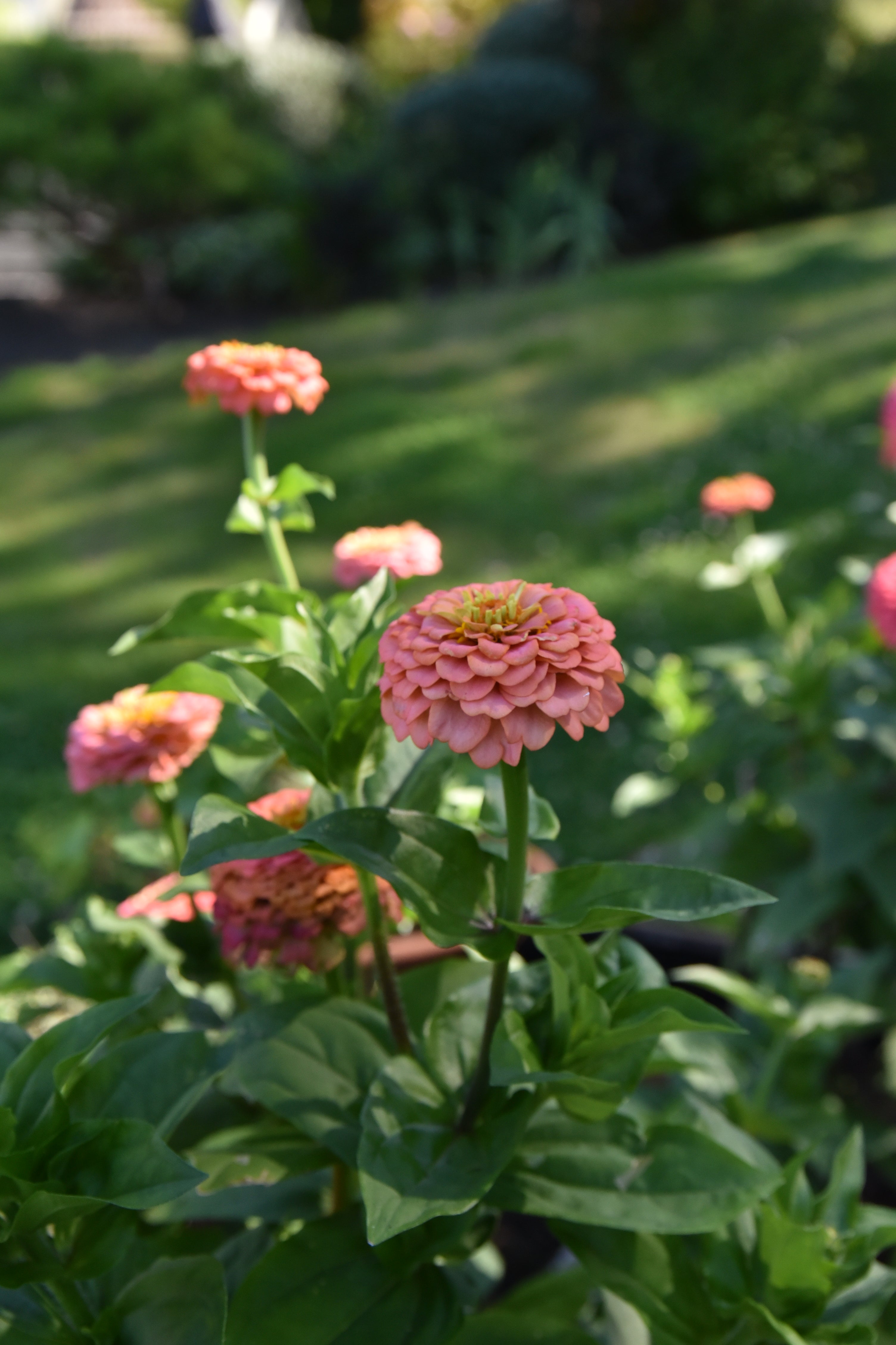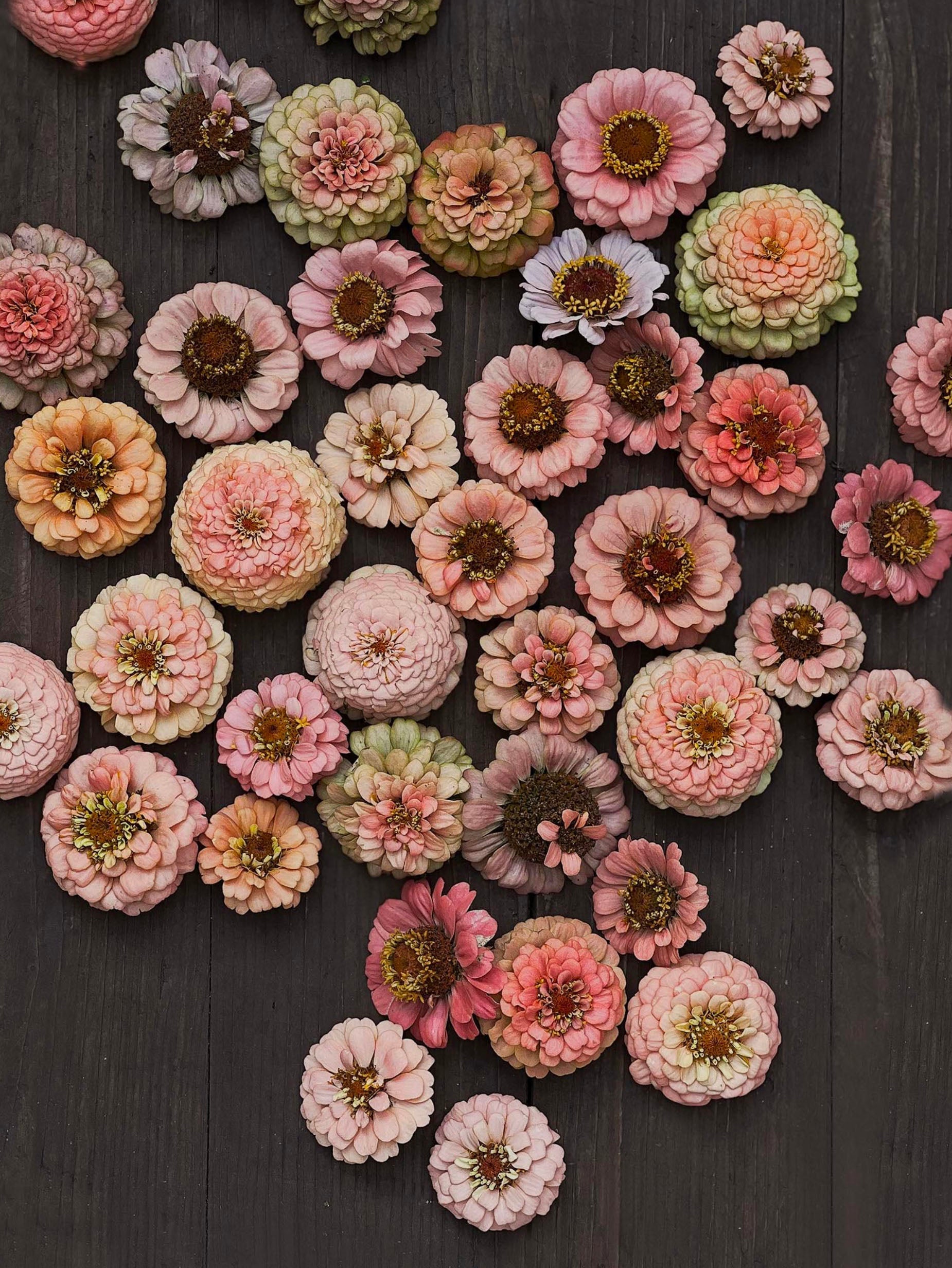 Zinnia 'Oklahoma Salmon' is chosen for its excellent color, form, and blooming traits. It produces double flowers in a mix of salmon and apricot pink shades. The flowers are relatively small but abundant, especially when regularly harvested. With sturdy stems, it's the perfect cut flower for seasonal mixed bouquets.